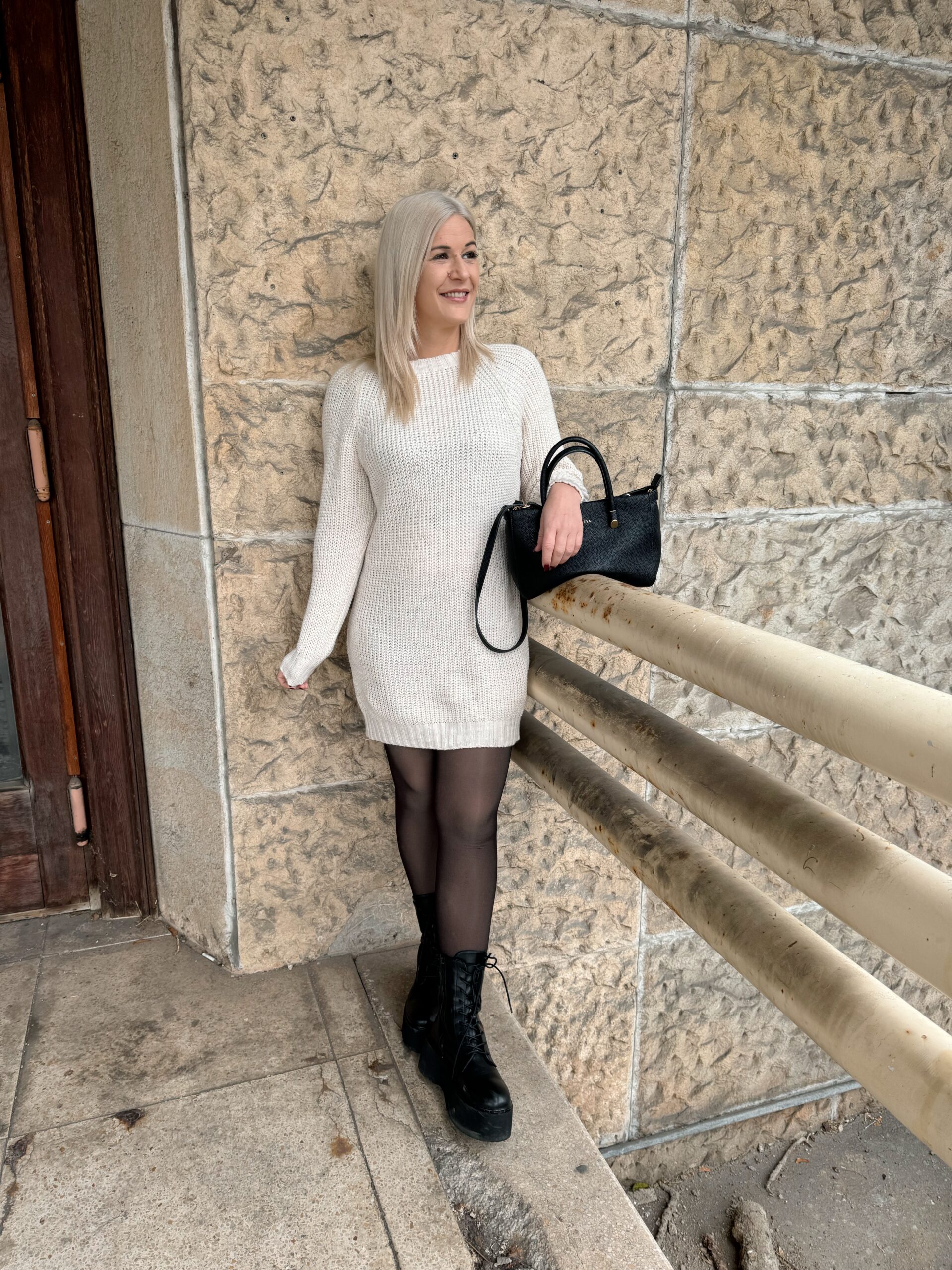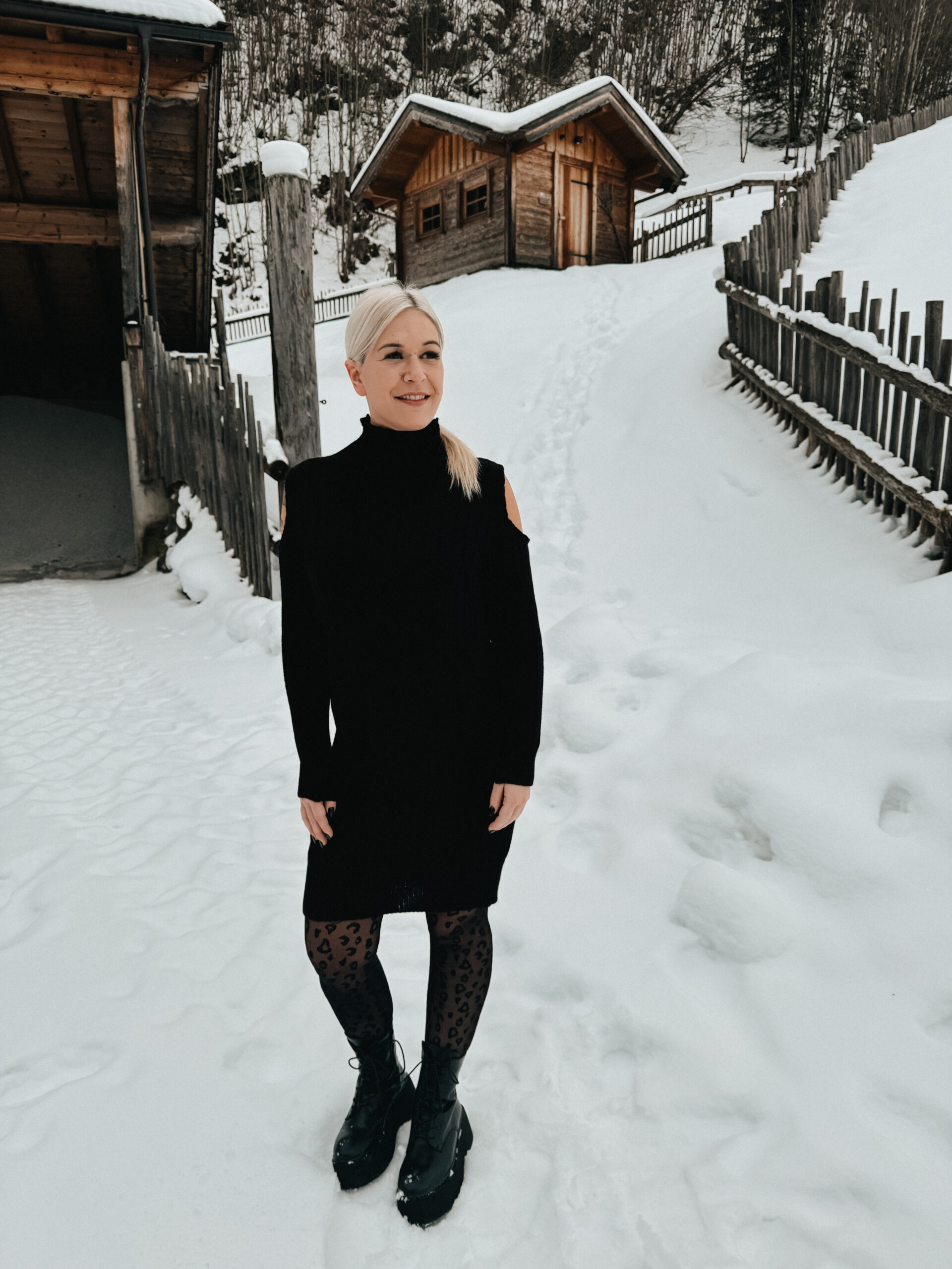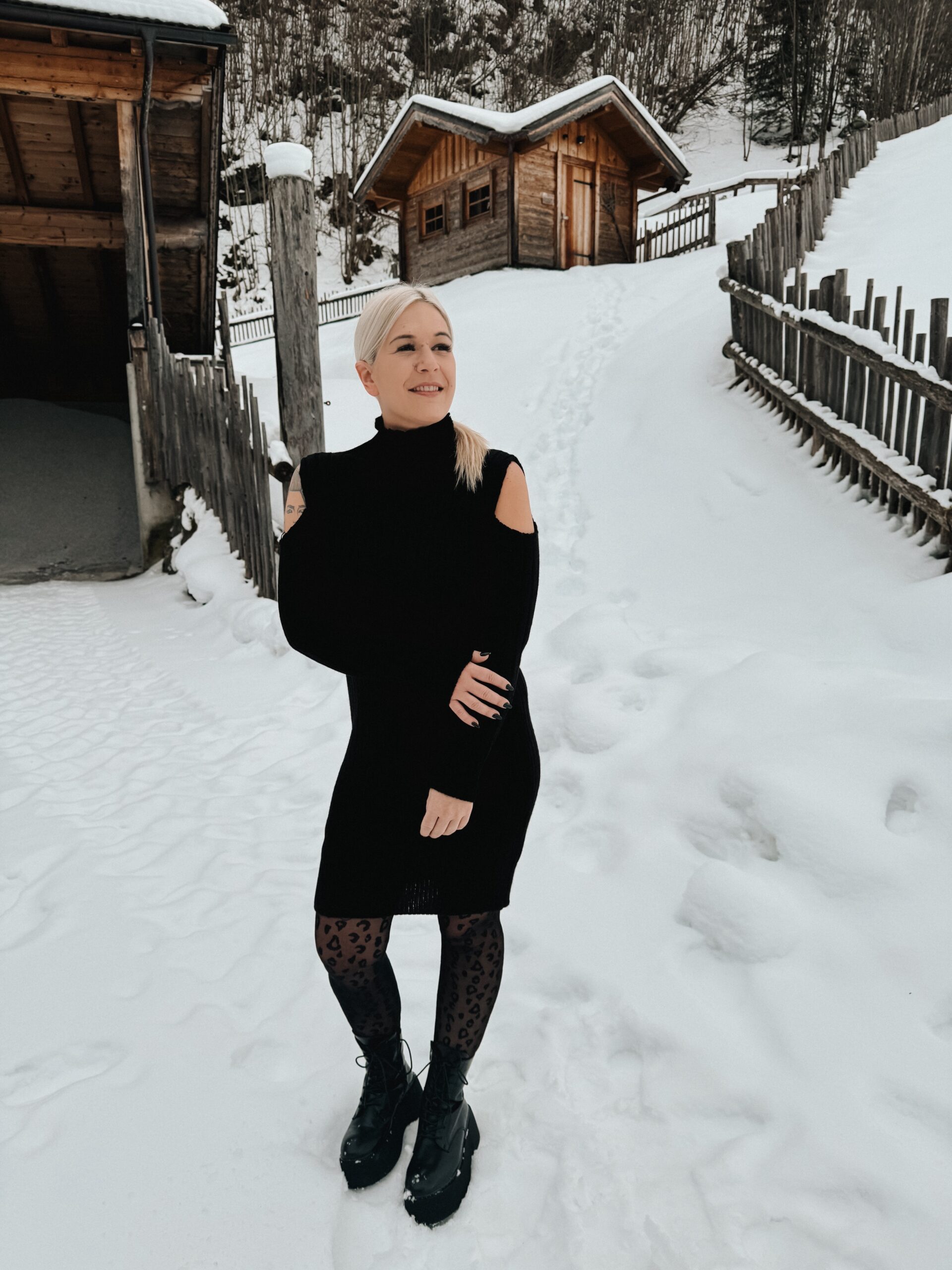 270 Strickkleid mit Cut Outs in beige, schwarz & grau