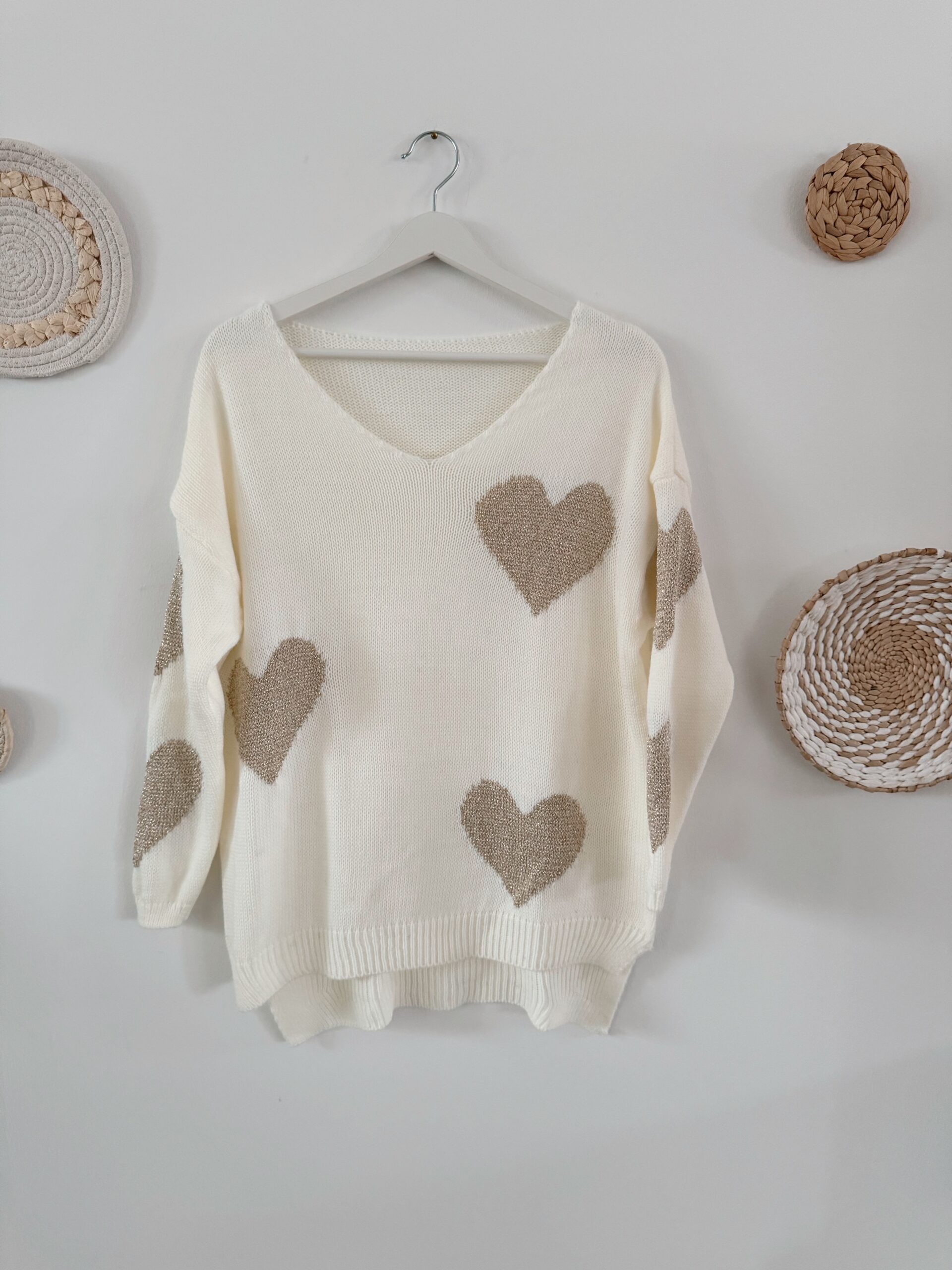 0267 Pullover mit Herz in beige & weiß