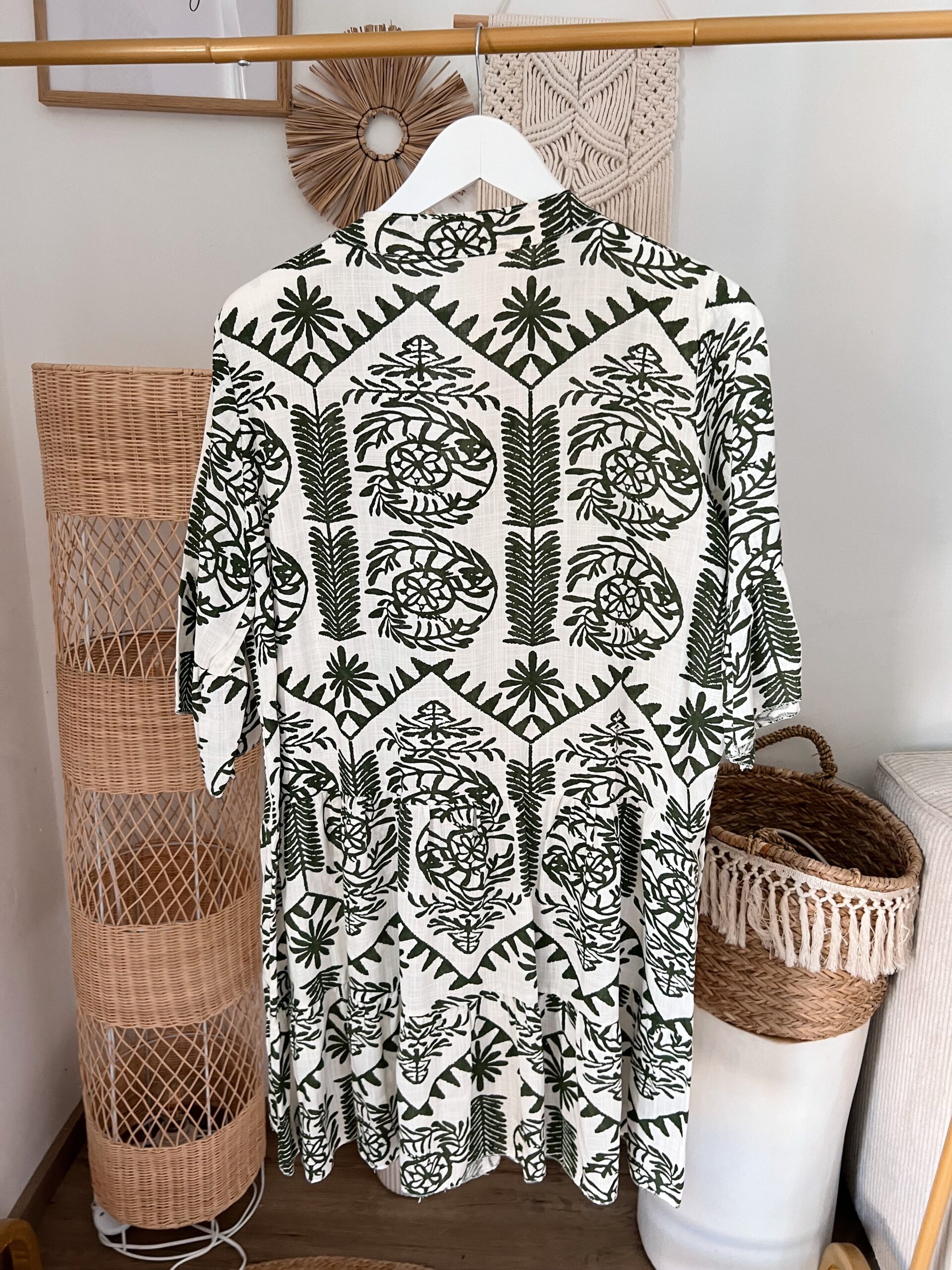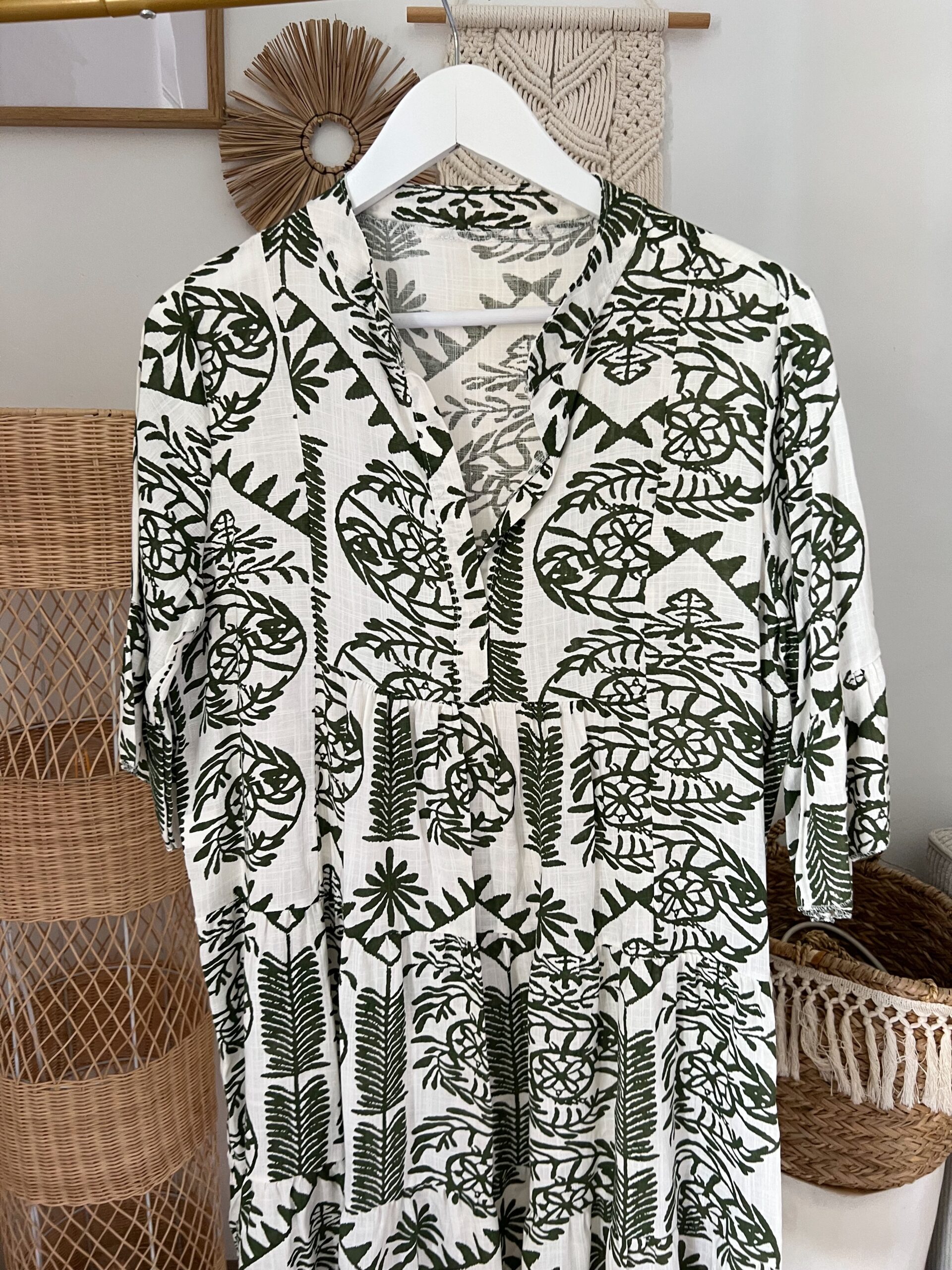 0132 Tunika mit Boho Print in pink,khaki & beige