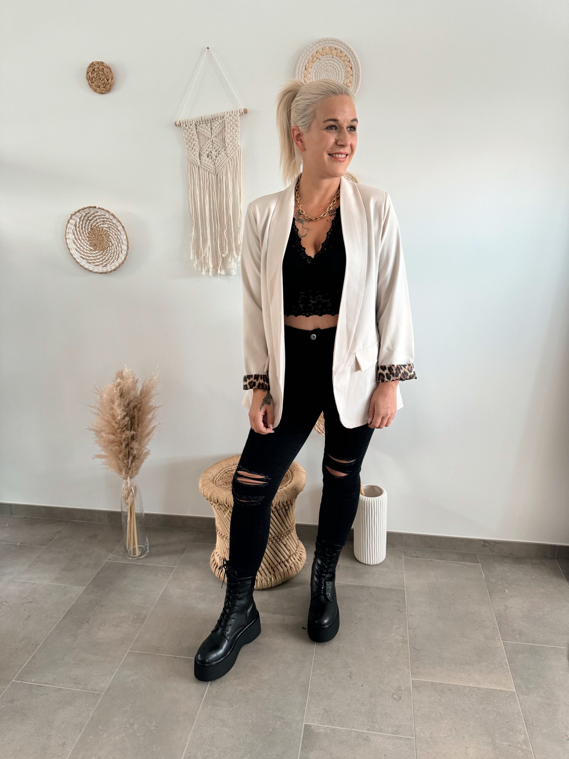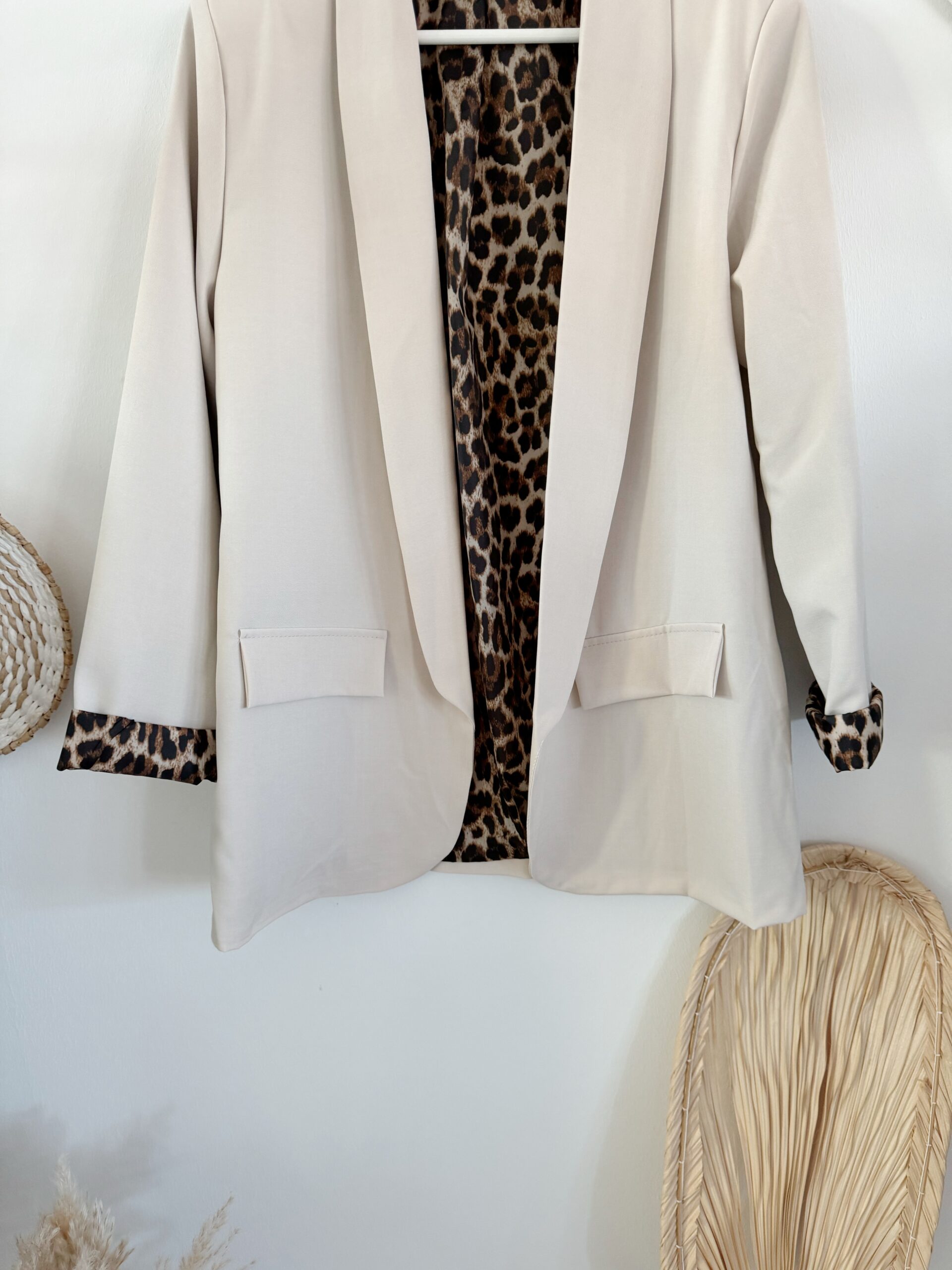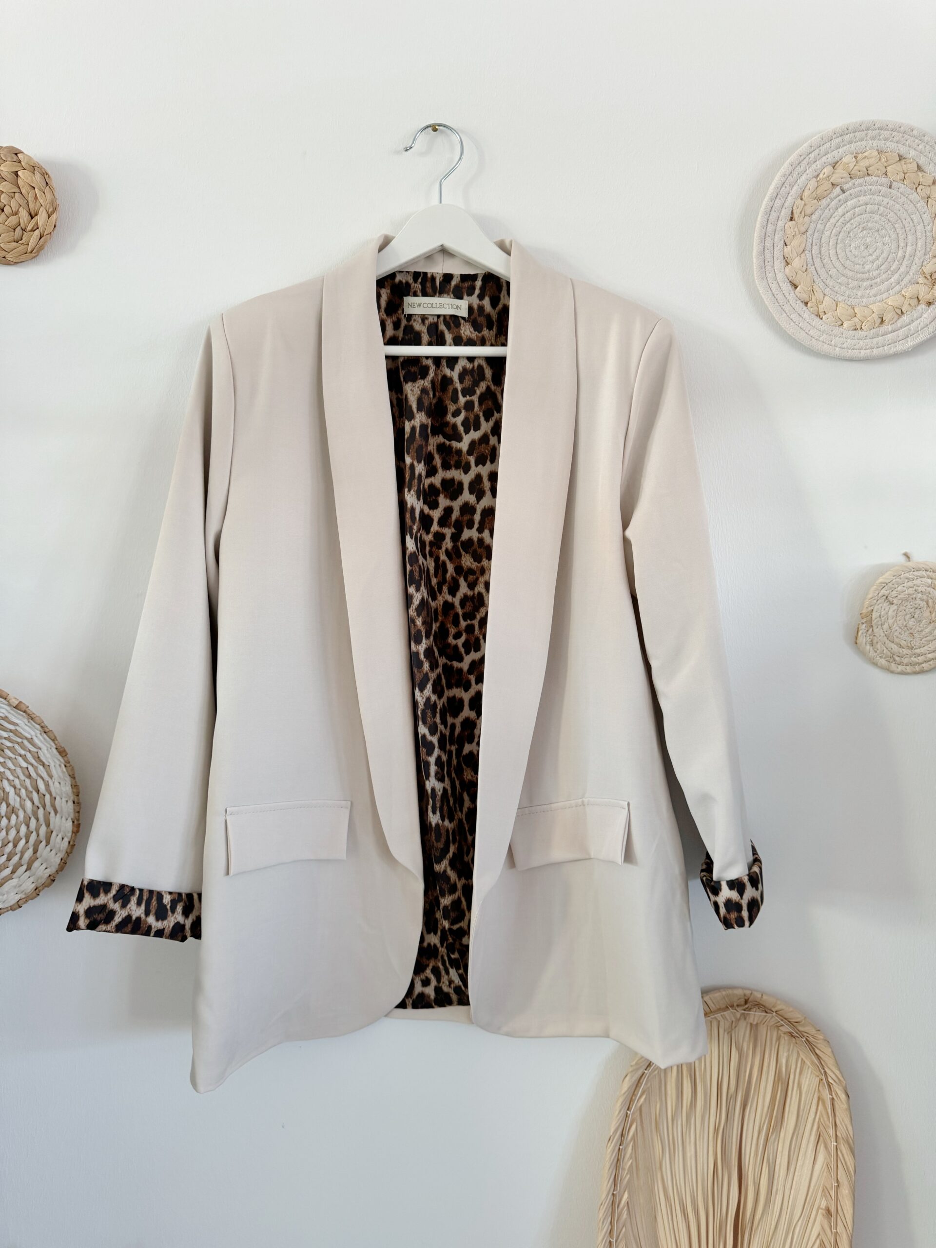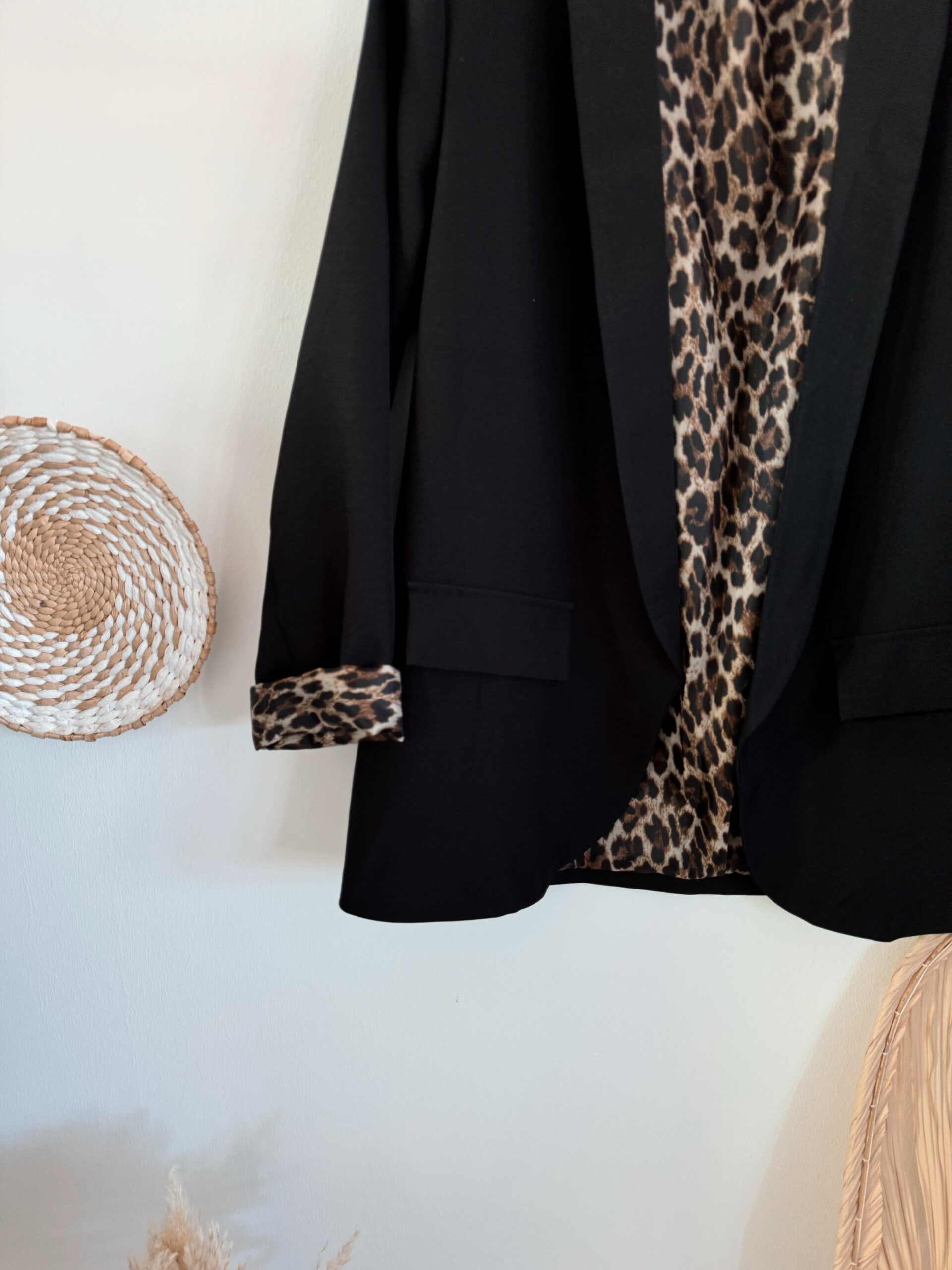 0205 Blazer mit Leo Innenfutter in schwarz, beige