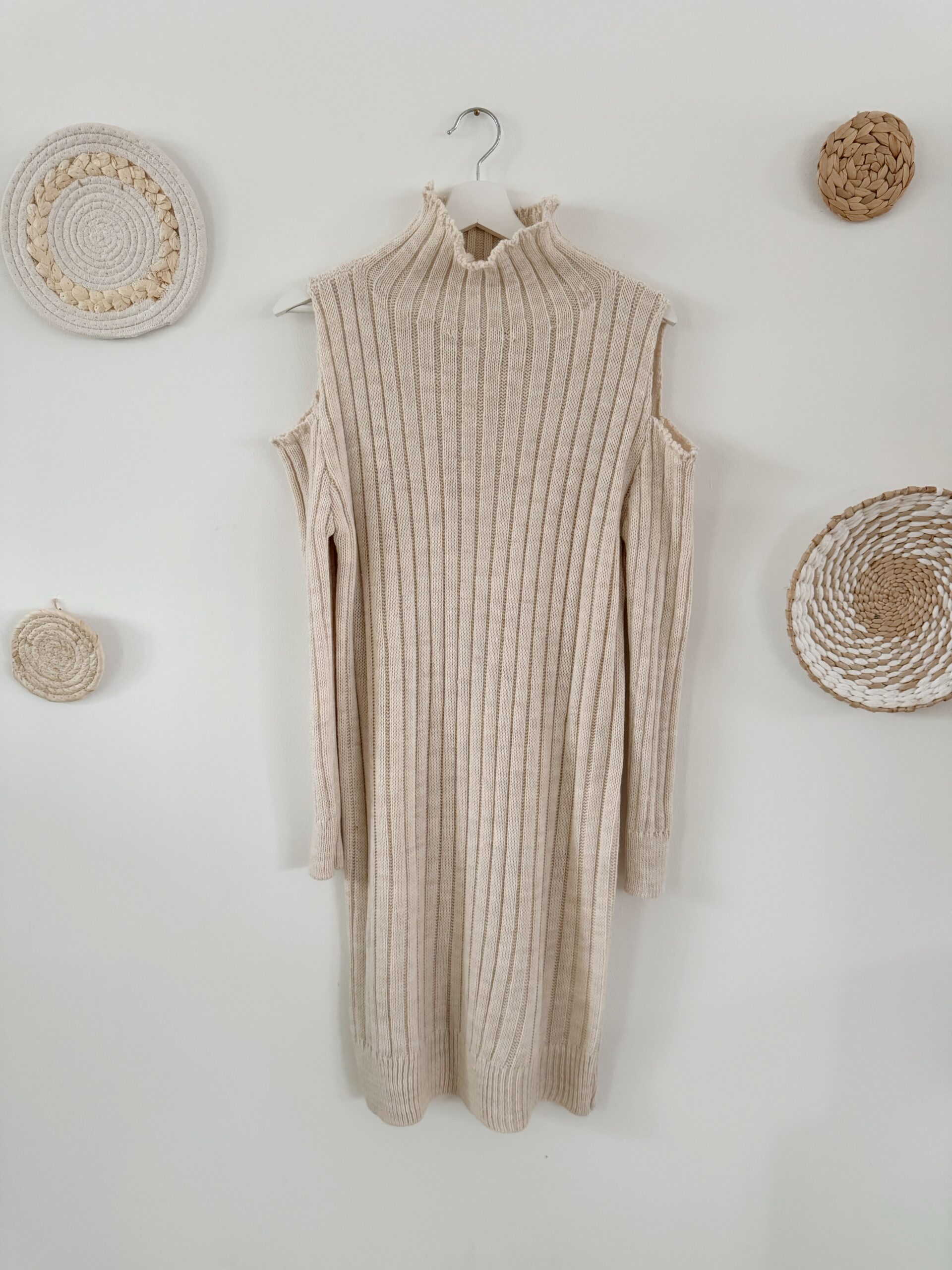 270 Strickkleid mit Cut Outs in beige, schwarz & grau