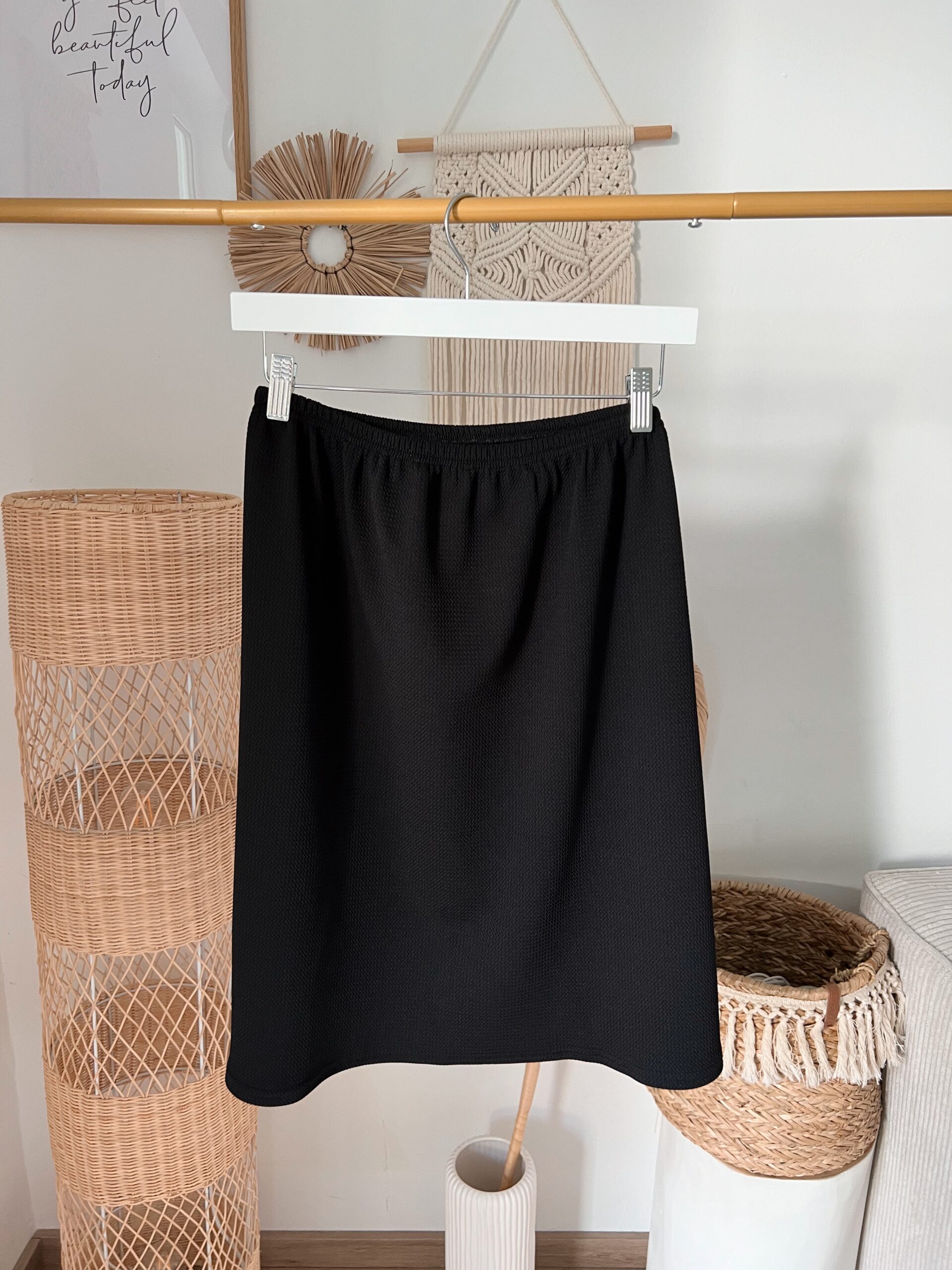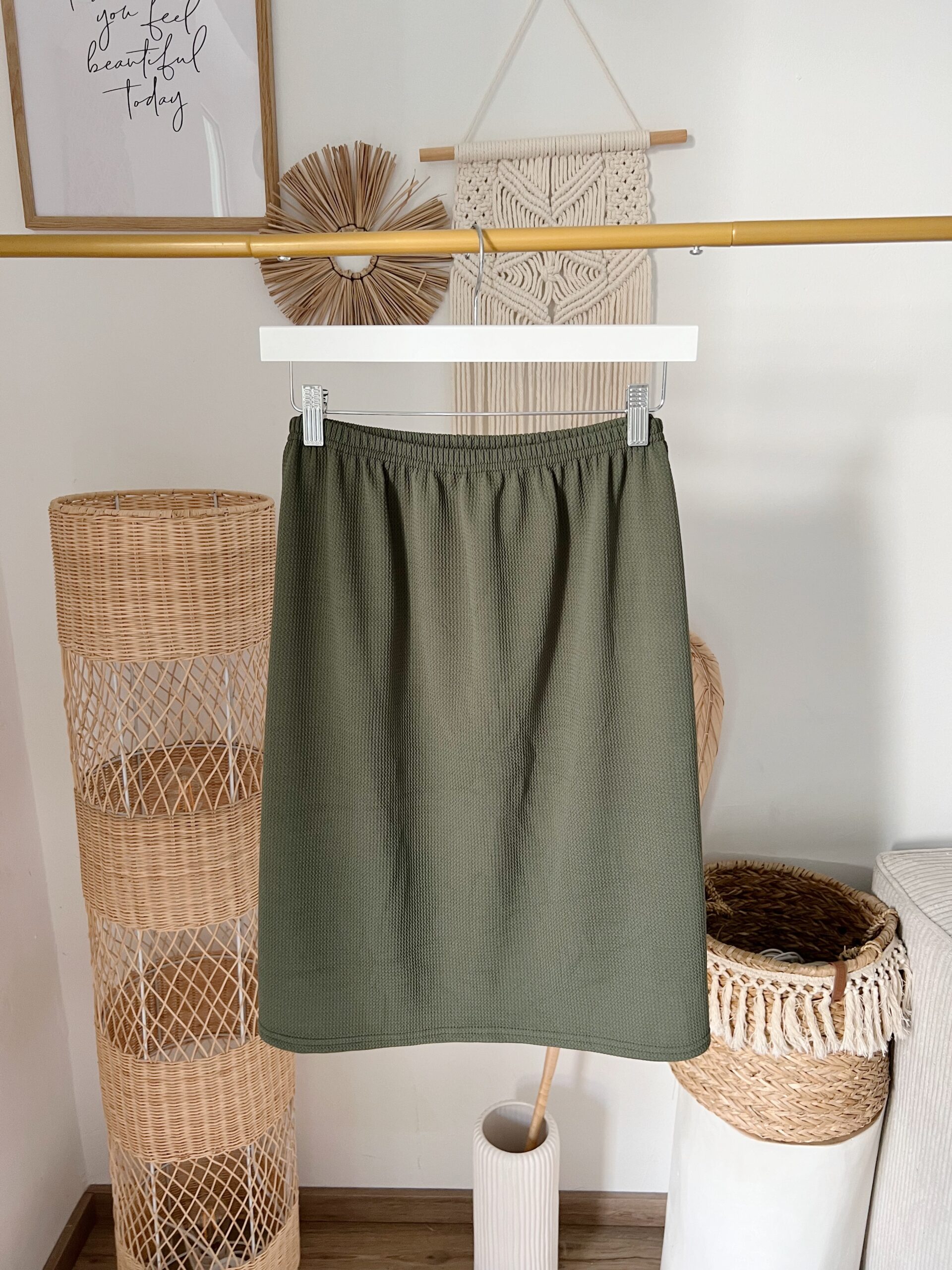 0107 Rock mit gewaffelter Oberfläche in beige, khaki & schwarz