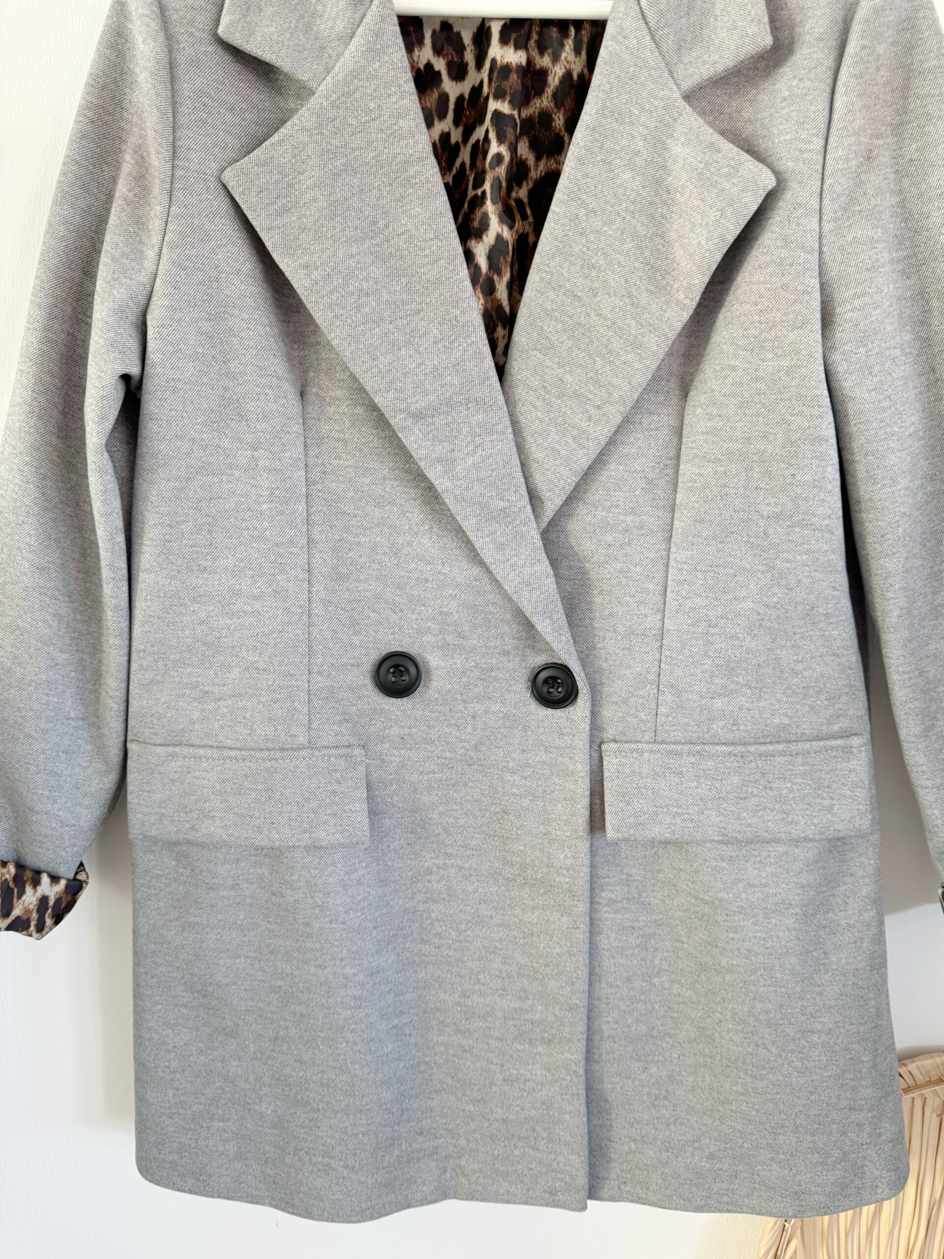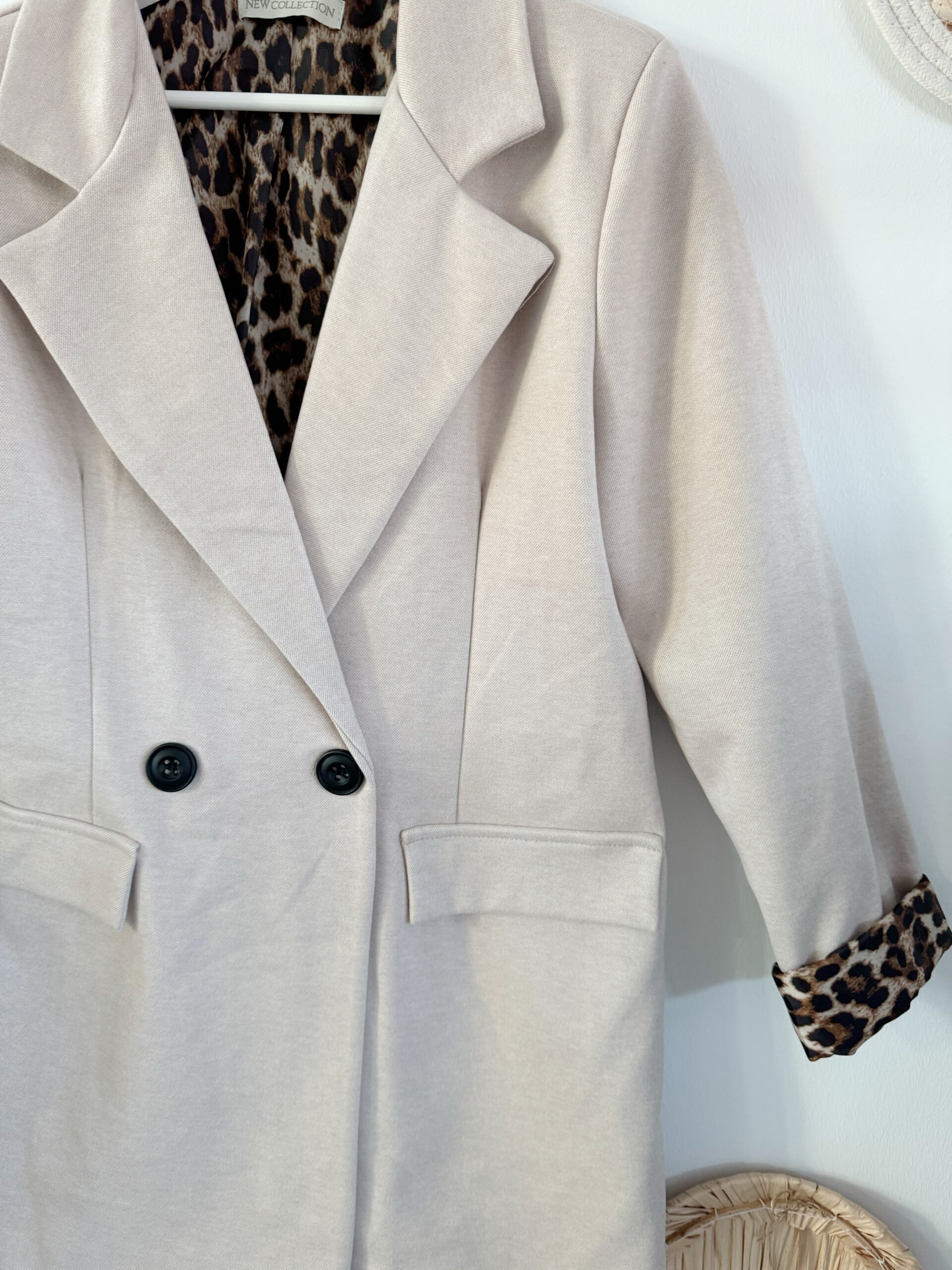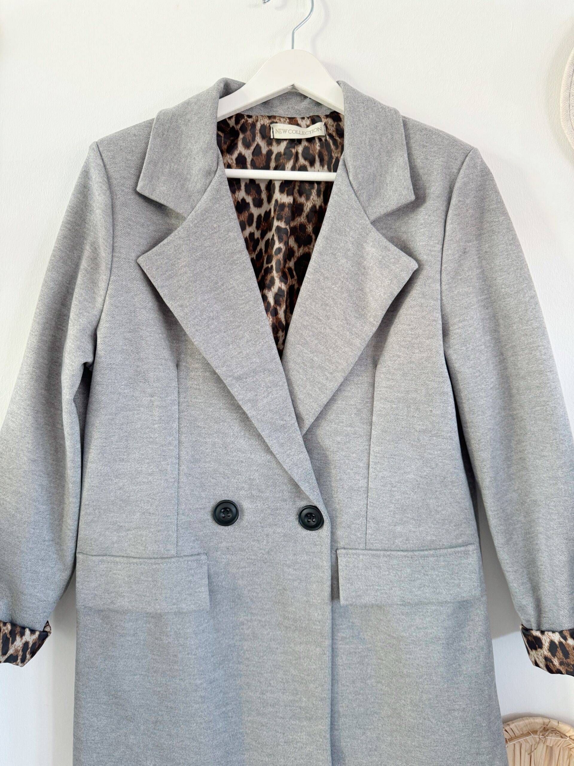 0204 Mantel mit Leo Innenfutter in schwarz, grau und beige