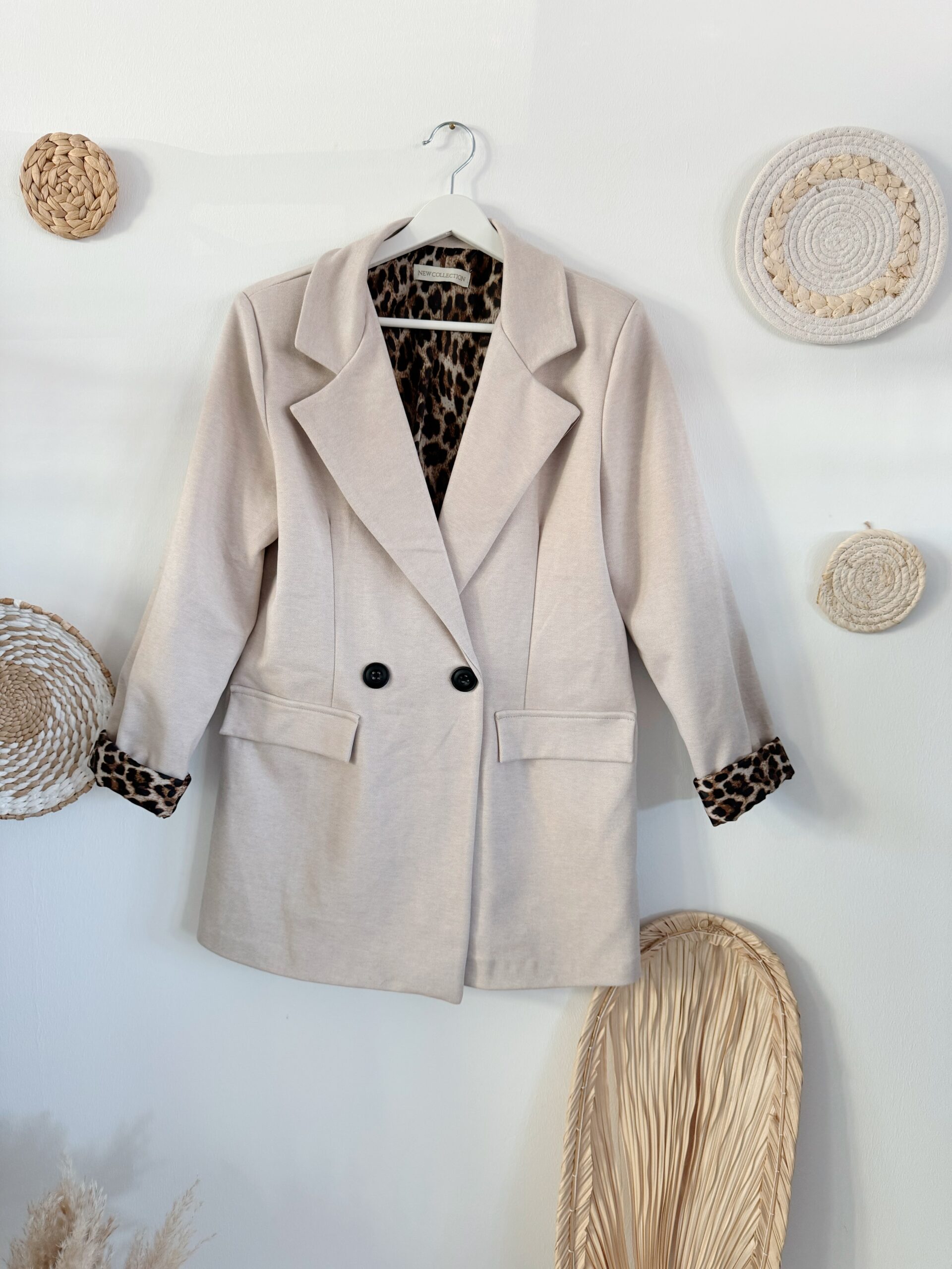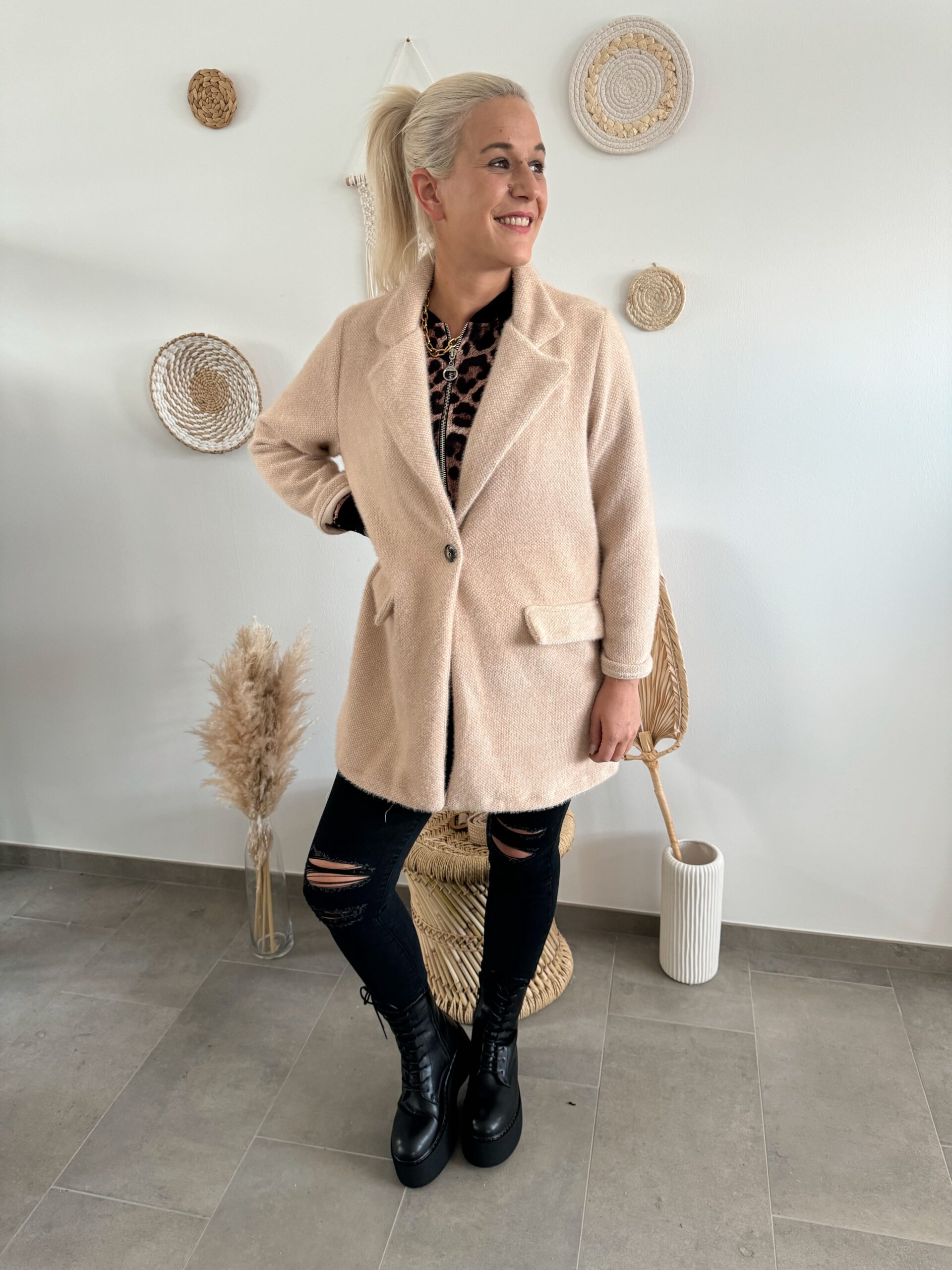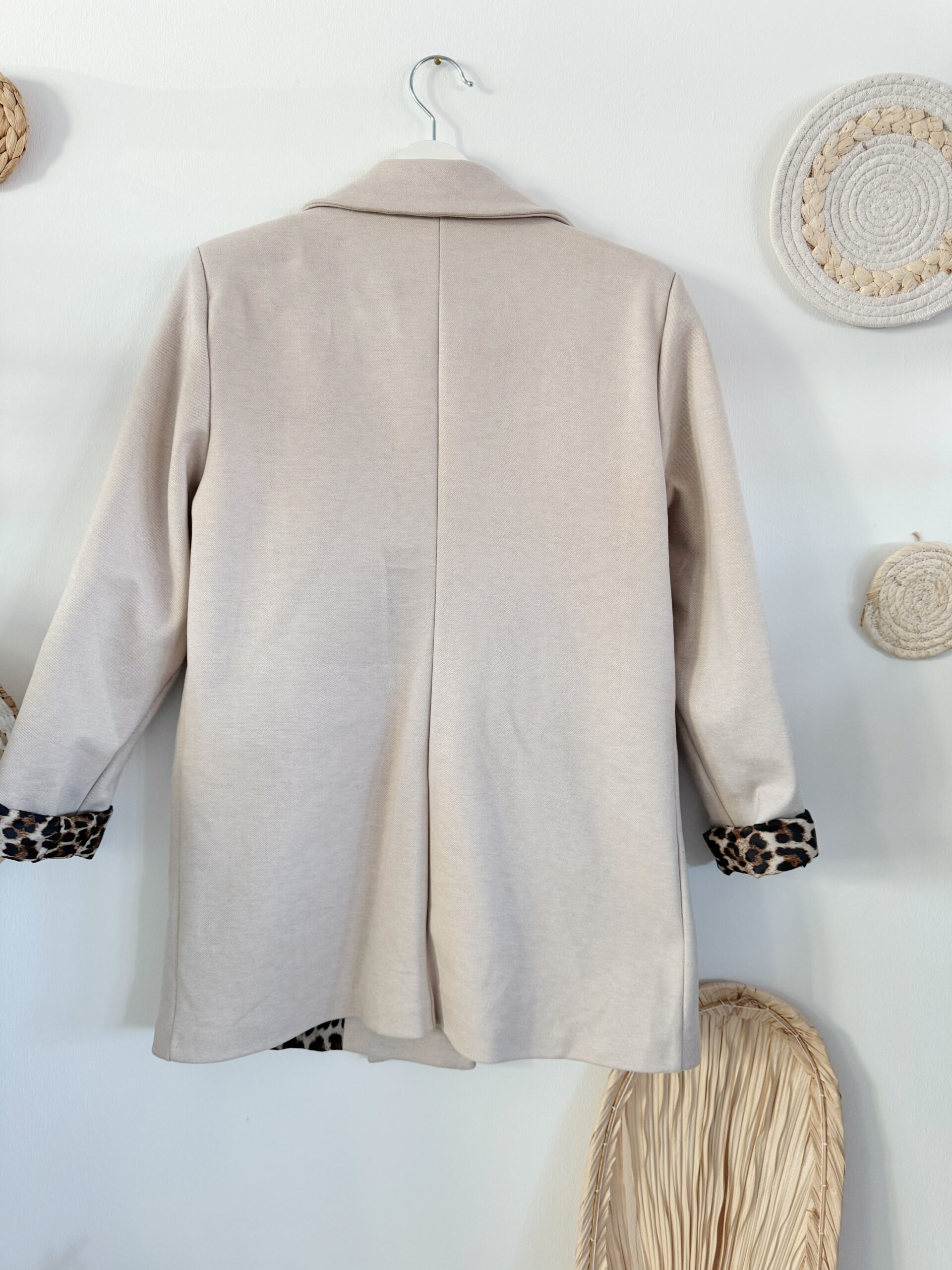 0204 Mantel mit Leo Innenfutter in schwarz, grau und beige