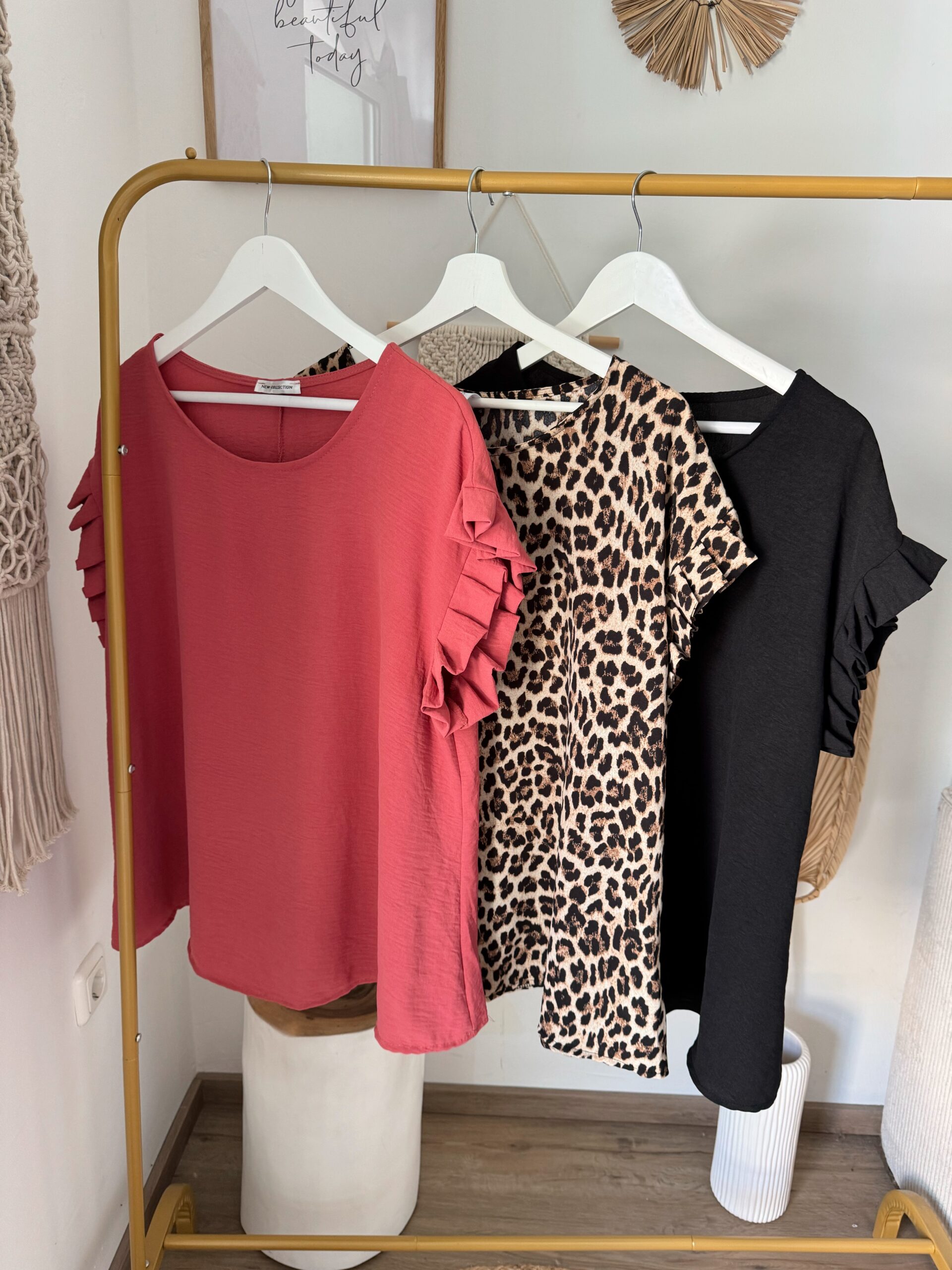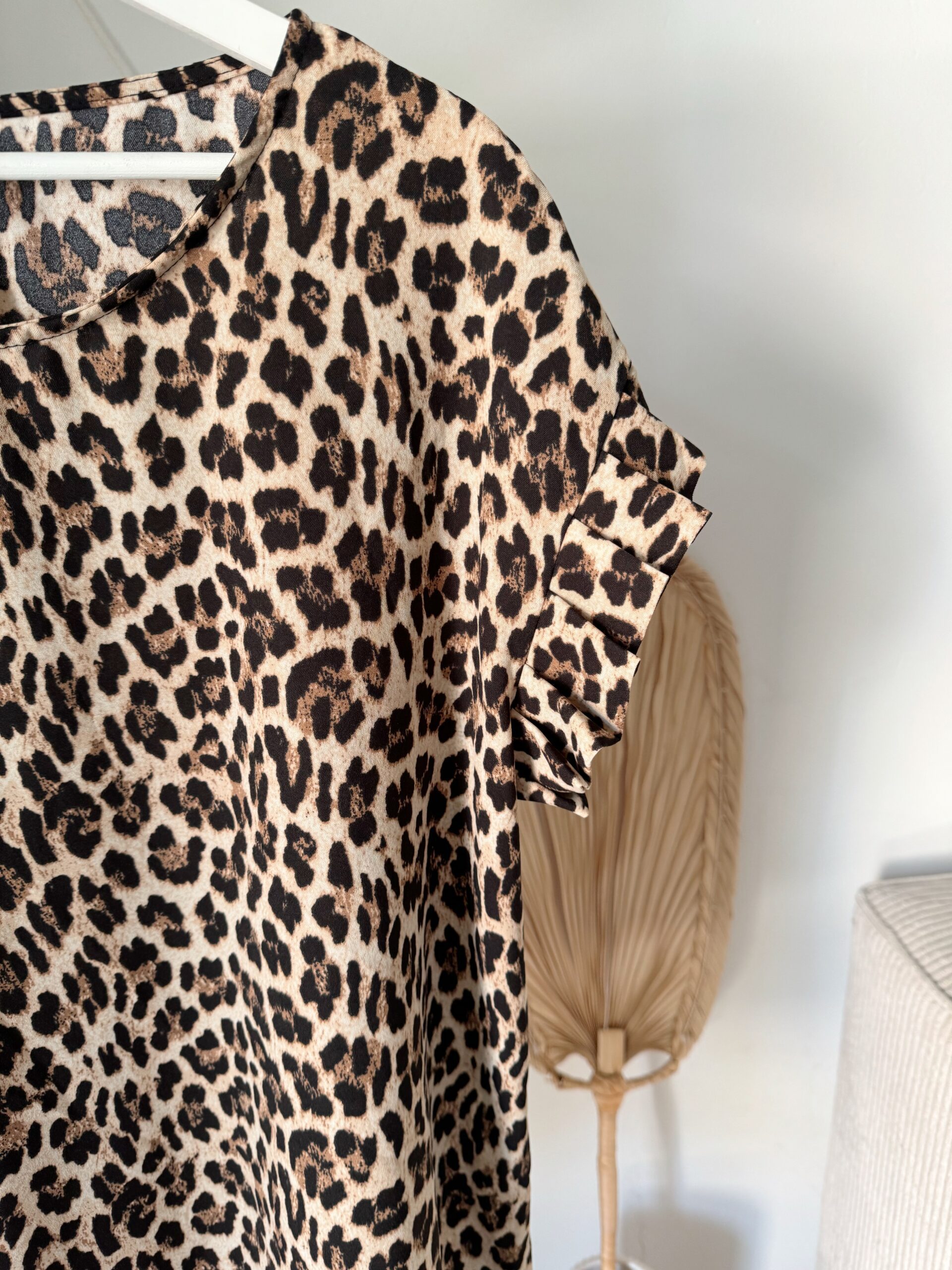 PS0015 lockere Bluse in rotbraun, leoprint & schwarz